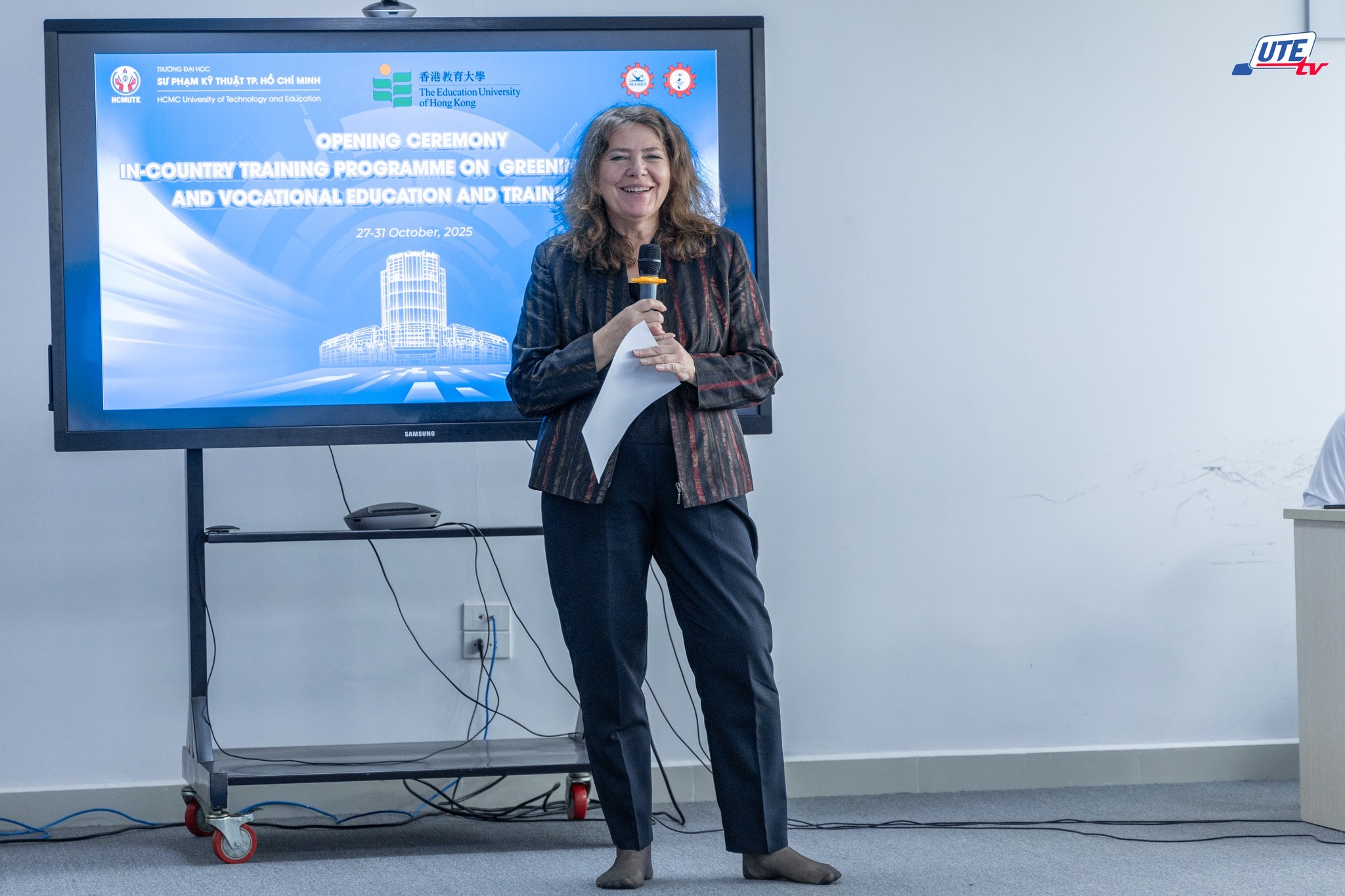 On the morning of October 27, 2025, the Opening Ceremony of the training program titled “Greening Technical and Vocational Education and Training (TVET)” took place at Room F1-608, Ho Chi Minh City University of Technology and Education (HCMUTE). The programme is co-organised by SEAMEO VOCTECH (Brunei) and HCMUTE.