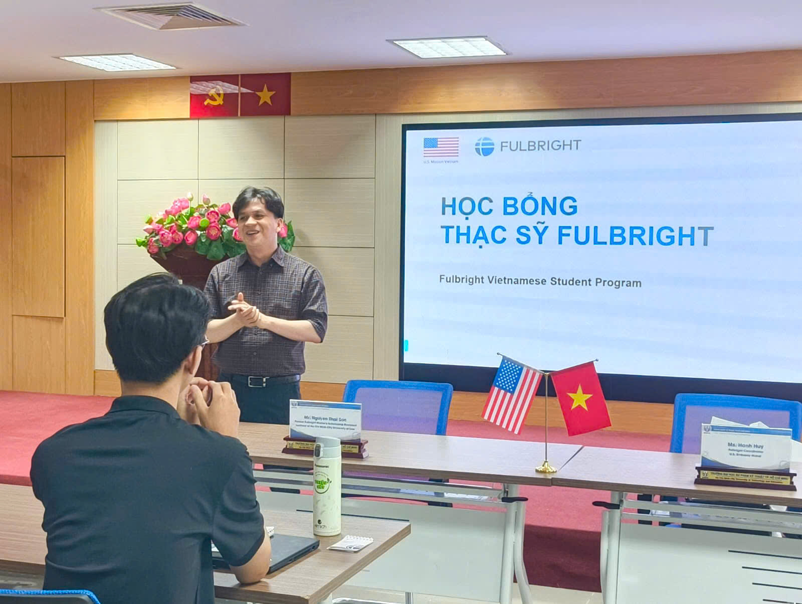 Continuing the session, Mr. Nguyen Thai Son shared his real-life experiences as a Fulbright scholarship recipient. He provided practical advice on preparing a competitive application, adapting to academic life in the United States, and making the most of one’s Fulbright journey. His earnest and detailed account, along with an interactive Q&A session, helped address many concerns and questions from participating students and lecturers.