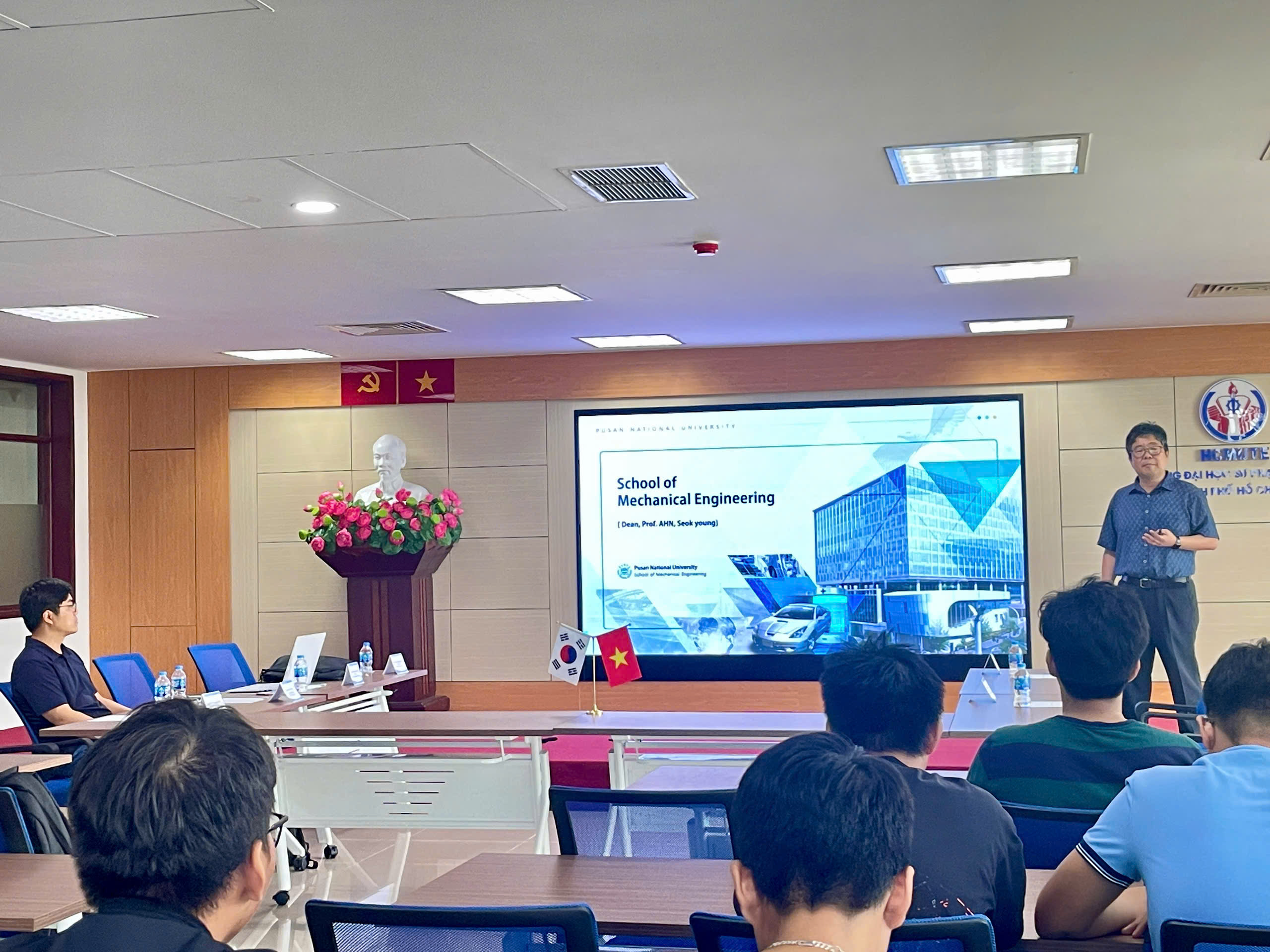 🎓 Professor Lim Heechang from PNU delivered an inspiring presentation highlighting research and educational opportunities at PNU, including valuable scholarship programmes and advanced academic pathways. A spotlight was given to the “AI-Feel” Laboratory, where cutting-edge artificial intelligence research is being conducted—offering exciting prospects for Vietnamese students passionate about technology and innovation.